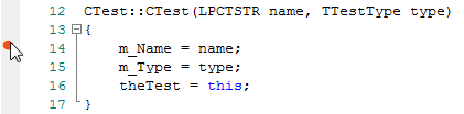 Alternatively, you can set the Breakpoint marker (or other marker) by right-clicking on the left margin on the required line, to display the breakpoint/marker context menu; select the appropriate marker type. |