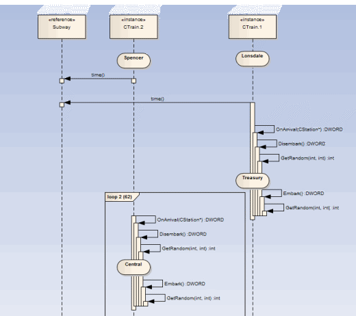 - Generate Sequence diagrams that report user-defined transitions in state as a program executes (as shown in the example generated diagram)