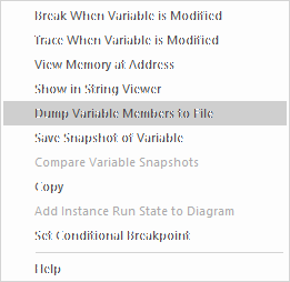 At the start breakpoint, right-click on a variable in the Locals window and select the 'Save Variable Snapshot' menu option. |