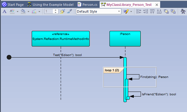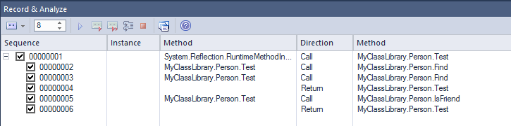 While you are working in the Workbench, you might want to produce a Sequence diagram for one or more methods you are developing or investigating. This can easily be accomplished. The same features of Enterprise Architect's Execution Analyzer are available in the Object Workbench. You might even begin a Workbench session by recording a Sequence diagram first off, as a means of visualizing what you plan to work on.