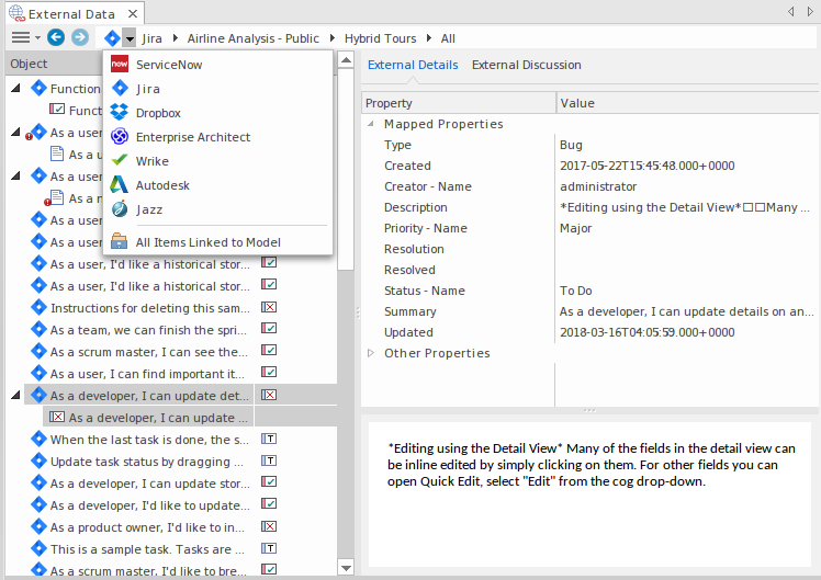 Architect模型的集成。 NB:需要Sparx Systems Pro