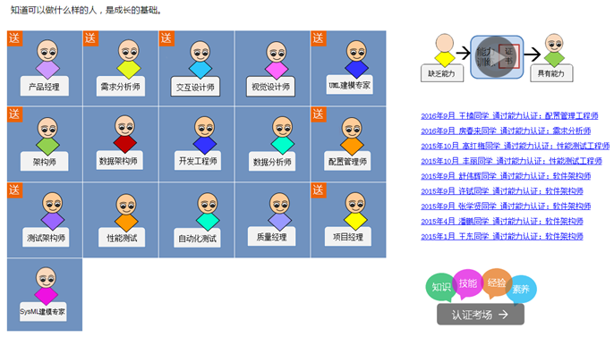 | 对定义的角色能力模型,可以进行能力评测,包括:知识考试,技能实践评测,经验调查,素养调查。 |